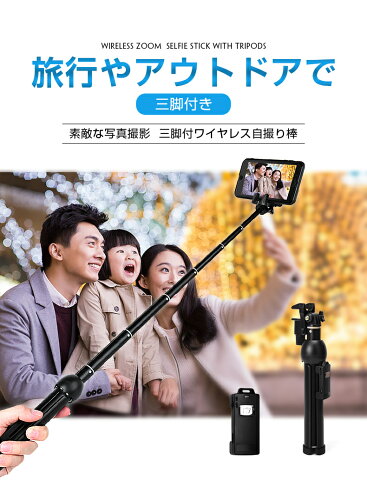 *自撮り棒 Bluetooth セルカ棒 じどり棒 自分撮り 自撮り 三脚スタンド 三脚付きセルカ棒 長い 軽量 無線 三脚 / 一脚兼用 360度回転 7段階伸縮設計 最大113cmまで伸長が可能 シャッターボタン付 持ち運びに便利 iPhoneXS max iPhoneX iPhone8 iPhone7/6/6s iPhone / Android スマホ等対応